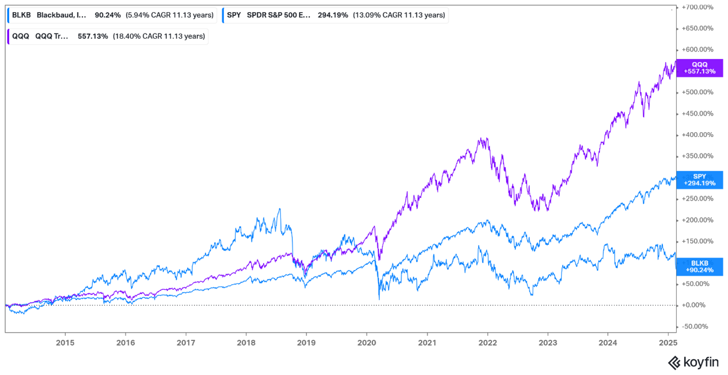 Mike Gianoni has been the CEO of Blackbaud since 2014. Under his leadership, the stock has underperformed the S&P 500 by 200% and the Nasdaq by 467%.