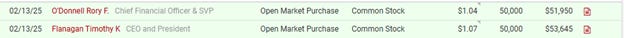 2. For the first time since 2021, management purchased stock. While not surprising, all previous purchases have been disastrous. It is significant to see Tim Flanagan (CEO) make a purchase.